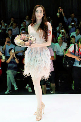 With the Mid-Autumn Festival only six weeks away it is time to ramp up the marketing for delicious moon cakes. Guangzhou was the place to be as Pace Wu, in a gown with a feathery skirt did the honors for Häagen-Dazs.